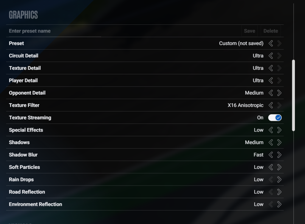 Estes dias comecei a jogar o LMU, que de jogo não tem nada, é puramente um simulador, sem modo tutorial, sem modo carreira, sem história, apenas a simulação de treino livre, classificação e corrida. Logo quando abri o jogo, percebi que o jogo tava bem feio, com bastante serrilhado, com cara de simulador indie e o pior, dando umas travadas e uns stuterring que com a minha placa 4060 não eram pra acontecer. Então fiz uns ajustes nas configurações gráficas que não somente melhoraram muito a performance do jogo, zerando as travadinhas, mas também deixaram o jogo muito mais bonito, com cara de AAA de fato. Decidi então escrever esse artigo para quem busca otimizar sua experiência no LMU